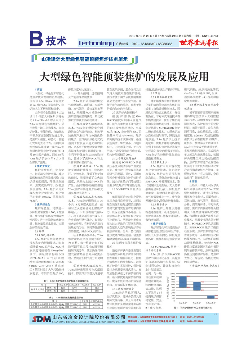 山冶設(shè)計大型綠色智能頂裝焦爐的發(fā)展及應(yīng)用