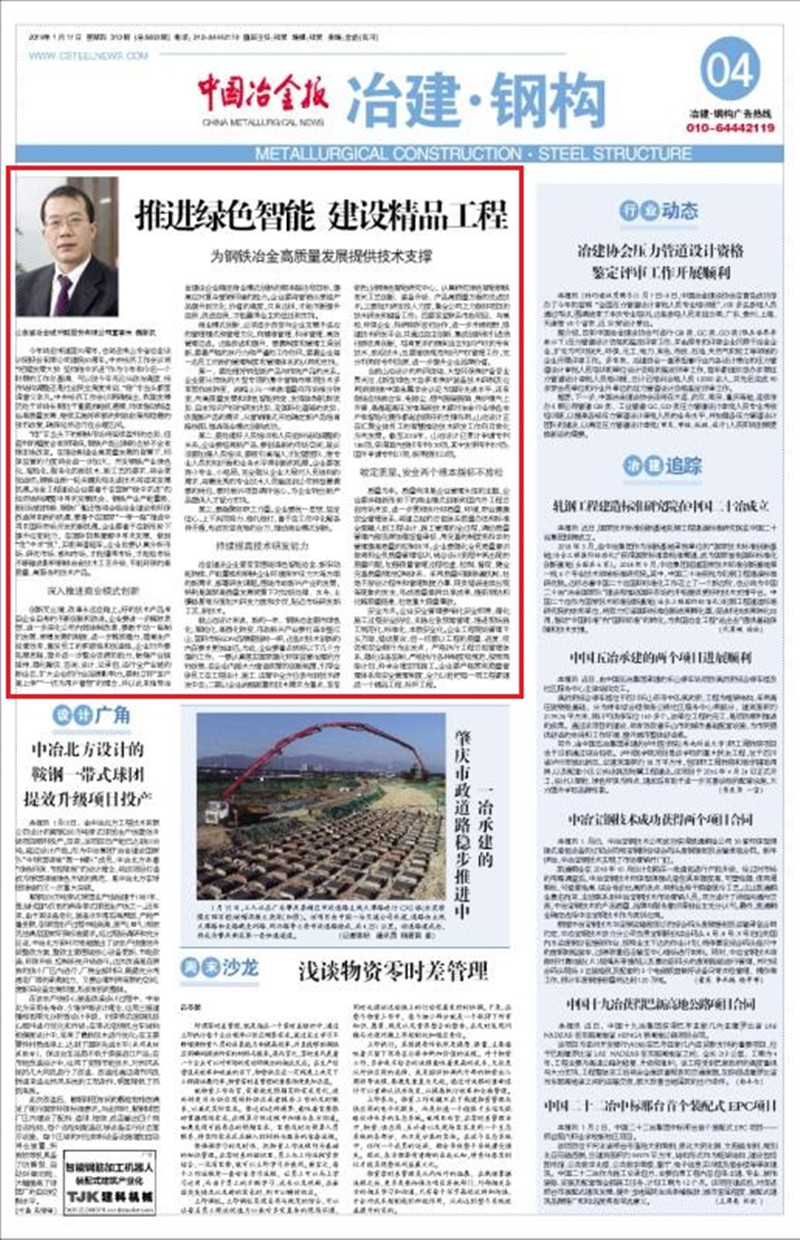 推進綠色智能 建設精品工程——山冶設計為鋼鐵冶金高質量發展提供技術支撐