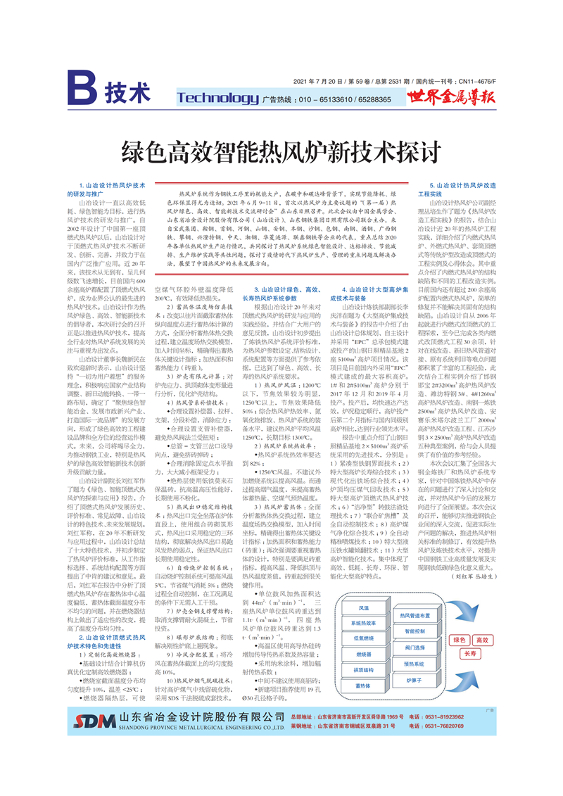 改進型頂燃式熱風爐十大特色技術